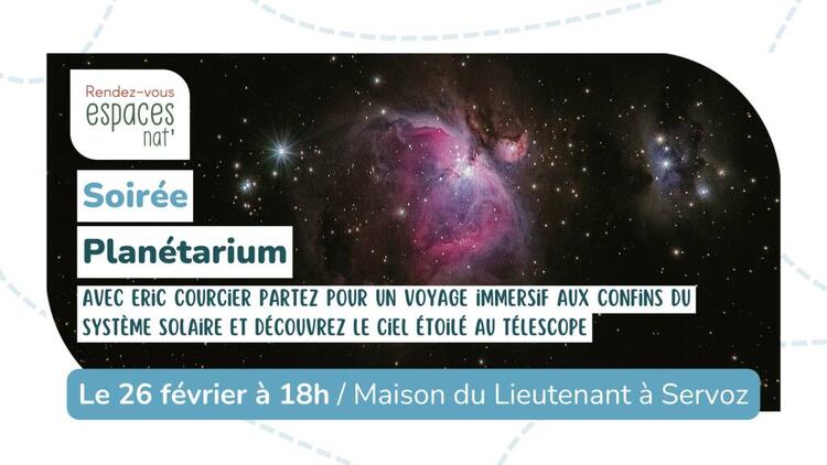 Join astronomy enthusiast Éric Courcier at the planetarium for an immersive journey to the farthest reaches of the solar system. If the sky is clear, the evening continues outside, with a telescopic observation of the sky.