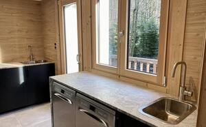 LE CASTLE is the spectacular main chalet. The impressive building has 10 bedrooms and 8 bathrooms, and can accommodate up to 20 people. It boasts a private Jacuzzi, parking spaces and garden. With 3 separate lounge areas and 3 kitchens - one of which is fully professionally equipped - the configurations are endless! A laundry room with washing machine and dryer is located in the main building, and there's also a heated ski room with closed lockers on the grounds. The chalet can be divided into three different areas, each with its own private access: