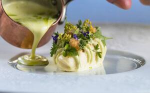 Demanding, passionate and daring, chef Damien Leveau offers an inventive cuisine that highlights the qualities of the produce he carefully selects from the Hameau's kitchen garden and its regular producers.